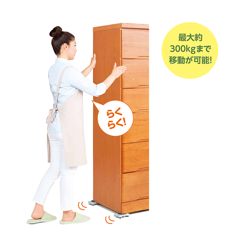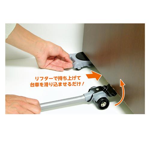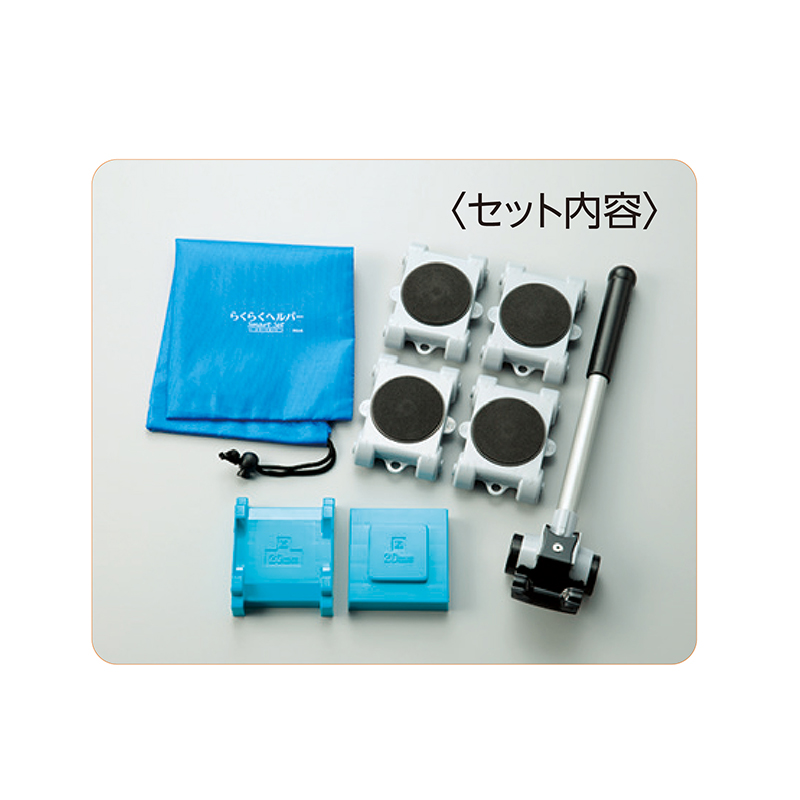 重いタンスやソファー等が一人でラクに動かせる。 部屋の模様替えや掃除などの際の重量物の移動を手助けしてくれます。畳の縁やフローリングの継ぎ目などもスムーズに通過できます。 ●セット内容:①リフター、②台車×4、③テコベース(トップ)、④テコベース(ボトム)、⑤収納袋 ●サイズ(約):①=幅6.7×奥行32×高さ4.4cm/②=幅10×奥行8×高さ3.1cm/③=幅9.1×奥行7.7×高さ3.1cm/④=幅7.7×奥行7.7×高さ2.6cm ●重量(約):①=258g/②=90g(1台)/③=42g/④=36g ●耐荷重(約):①=150kg/②(1台)=100kg ●材質:①=ABS樹脂、スチール、PVC/②=ABS樹脂、スチール、ウレタン/③④=ABS樹脂 ●日本製 ※ご使用後の返品・交換はお受けできません。