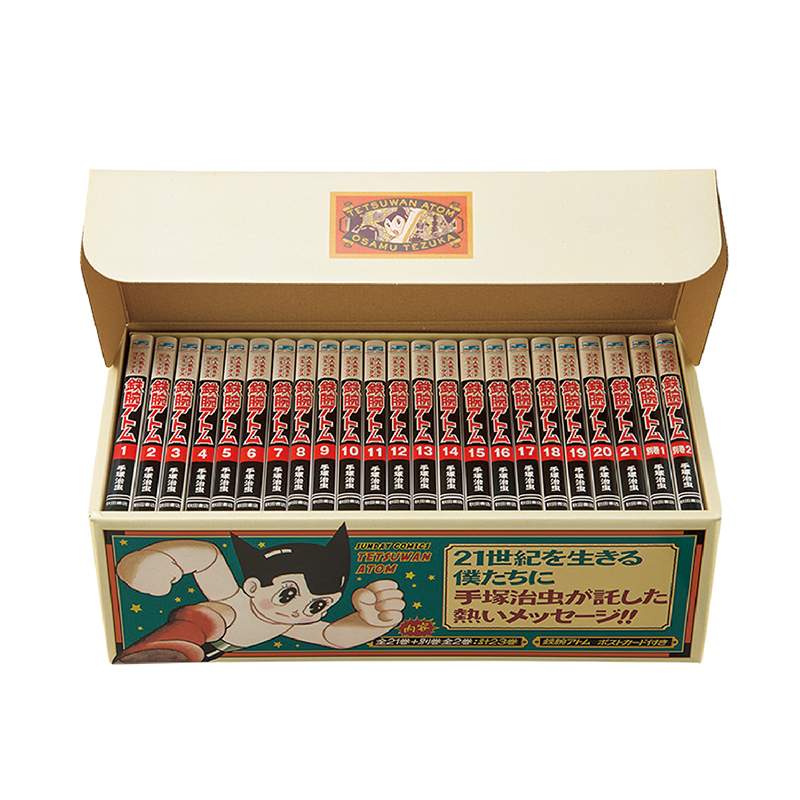日本漫画史に輝く不朽の名作「鉄腕アトム」全23冊セット。秋の夜長に一気読み。 日本の漫画・アニメの金字塔であり、今なお評価が高い手塚治虫のSF代表作「鉄腕アトム」を全23冊セットでお届けします。懐かしい方も、初めての方も、名作の一気読みをお楽しみください。 ●サイズ(外寸・約):本体(1冊)=縦17.3×横11.3cm(平均217ページ)/ケース外寸=幅37×奥行18.5×高さ12cm ●総重量(約):4.5kg ●著者:手塚治虫 ●初版:1999年6月~2000年4月 ●出版社:秋田書店 ●セット内容:美麗ケース入り本巻(全21巻)+別巻(全2巻)計23冊セット ●特典:ポストカード3枚付 ●日本製 ※落丁・乱丁・不良品以外の返品・交換はお受けできません。