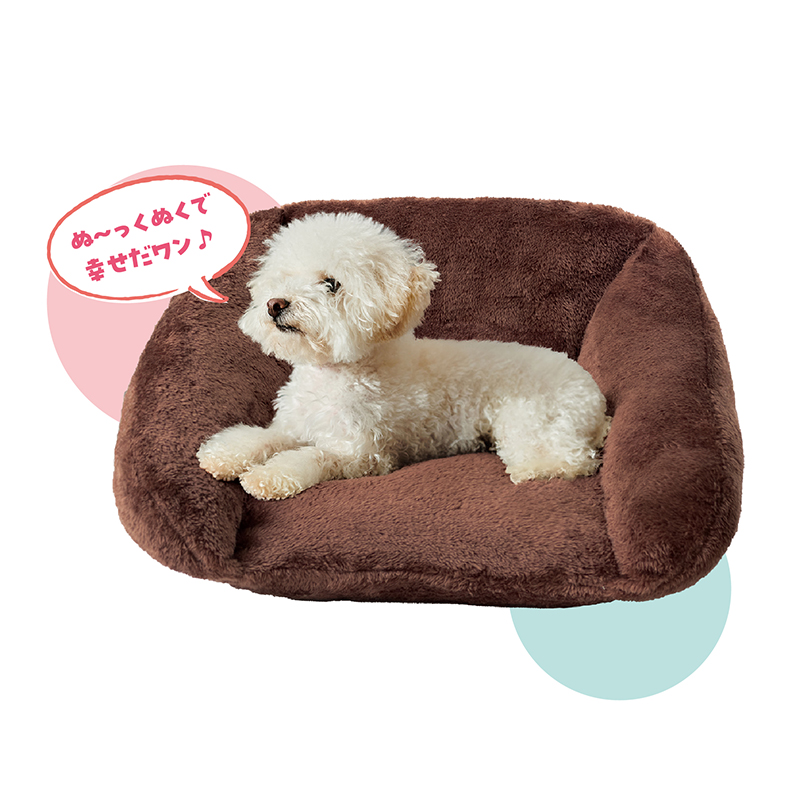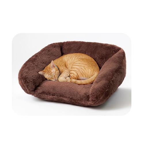 きっとお気に入りの場所になります。ボリュームたっぷりあったかベッド。 毛足の長いふんわり生地で肌ざわりがよく、ボリュームたっぷりのわたでやわらかく快適です。背もたれ、あごのせなど、ワンちゃんやネコちゃんが心地よく過ごせるデザインを追求しました。 ●カラー:ブラウン ●サイズ(外寸・約):幅40×奥行40×高さ30cm ●重量(約):600g ●材質:ポリステル100% ●手洗い可 ●中国製 ※ご使用後の返品・交換はお受けできません。