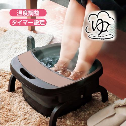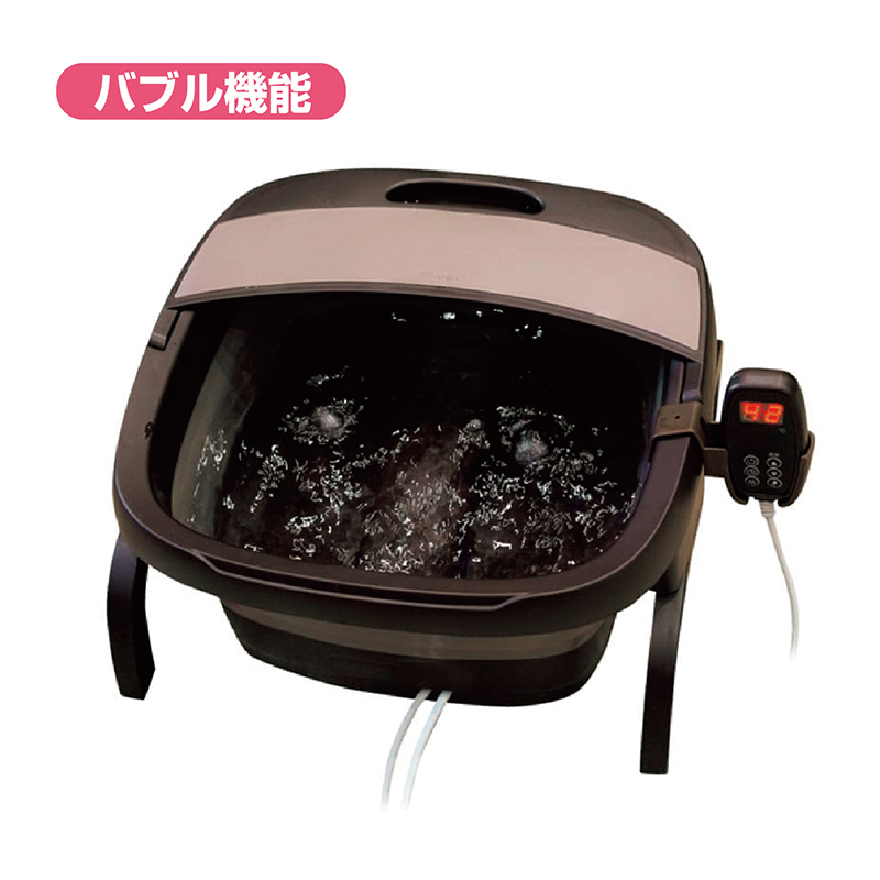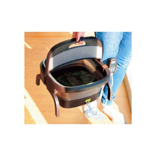 自宅で気軽に楽しめる、コンパクトサイズの足湯。 自宅で手軽に足湯! 加熱式だから、水道水を入れたら最速約10分で沸き、35~47度まで温度調整が可能。最長60分までのタイマー設定ができ、バブル機能も備えます。 ●サイズ(外寸・約):使用時=幅36×奥行35×高さ18cm/折りたたみ時=幅36×奥行35×高さ9cm/電源コード長さ=1.8m/対応足サイズ=最大27cm ●容量(約):3~7L ●重量(約):1.65kg ●材質:本体ケース部=ポリプロピレン/桶部=熱可塑性エラストマー ●電源:AC100V ●消費電力(約):500W ●仕様(約):サーモスタット=85度、温度調節=35~47度(1度刻み)、タイマー設定=30・40・50・60分(電源ON時自動的にタイマー作動、タイマーOFF不可)、バブル機能、湯温60度以上エラー表示、空焚き防止機能、リモコン付、屋内用 ●付属品:リモコンホルダー ●中国製 ※入浴剤やアロマオイル等は使用できません。 ※ご使用後の返品・交換はお受けできません。