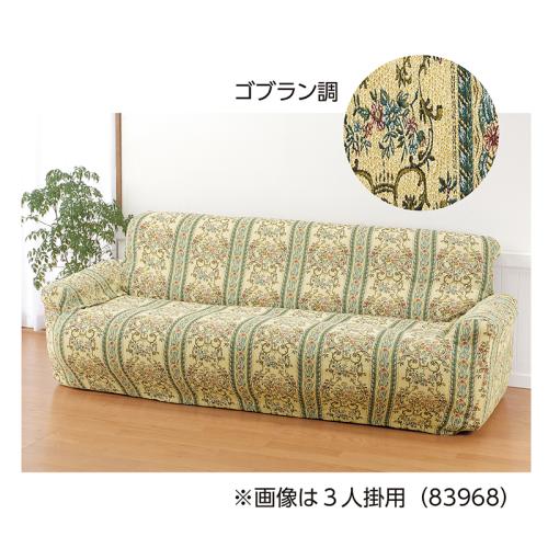 かぶせるだけでぴったりフィット。伸縮性があり、ズレにくいカバーです。 伸縮性がある生地がソファにフィットして、ズレにくいのが魅力です。豪華なゴブラン調タイプと、無地調タイプをご用意。無地調タイプは高級感あふれる風通織。立体感のある生地が張り地のようにフィットします。ご家庭で手洗いできます。 ●適応サイズ(約):幅140~170×奥行80~90×高さ90cm ●重量(約):1.5kg ●素材:ゴブラン調=ポリエステル55%、綿45%/グリーン・ベージュ=ポリエステル68%、綿30%、ポリウレタン2% ●手洗い可 ●中国製 ※肘掛けのないタイプ、肘掛けと背もたれの高低差がないタイプのソファはご使用になれない場合があります。 ※商品の性格上、一点一点柄の出方が異なります。