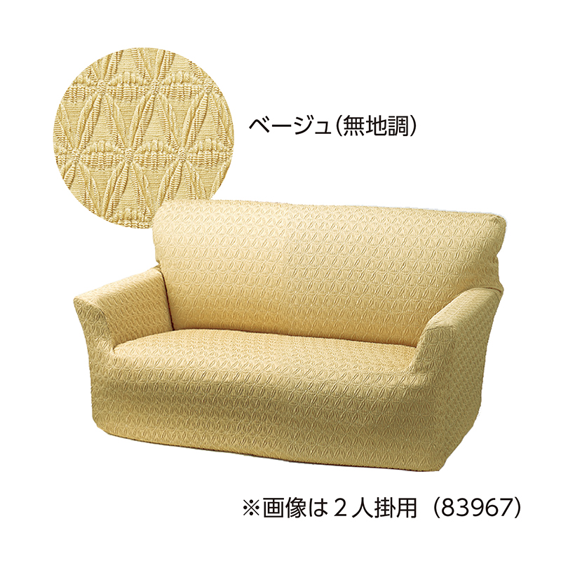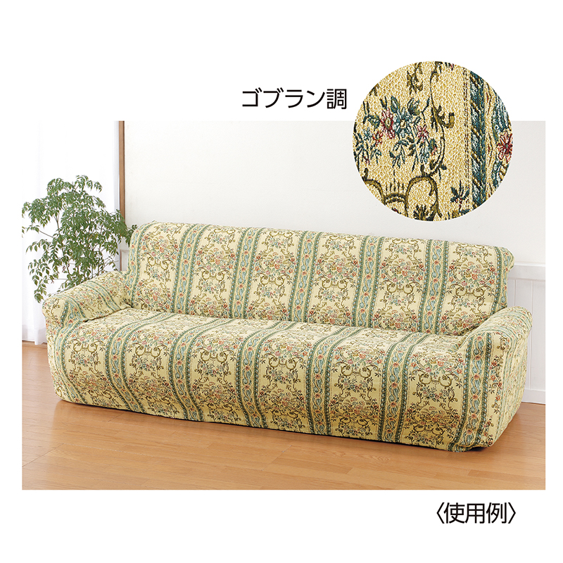 かぶせるだけでぴったりフィット。伸縮性があり、ズレにくいカバーです。 伸縮性がある生地がソファにフィットして、ズレにくいのが魅力です。豪華なゴブラン調タイプと、無地調タイプをご用意。無地調タイプは高級感あふれる風通織。立体感のある生地が張り地のようにフィットします。ご家庭で手洗いできます。 ●適応サイズ(約):幅180~210×奥行80~90×高さ90cm ●重量(約):1.7kg ●素材:ゴブラン調=ポリエステル55%、綿45%/グリーン・ベージュ=ポリエステル68%、綿30%、ポリウレタン2% ●手洗い可 ●中国製 ※肘掛けのないタイプ、肘掛けと背もたれの高低差がないタイプのソファはご使用になれない場合があります。 ※商品の性格上、一点一点柄の出方が異なります。