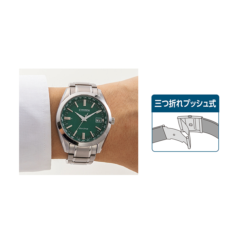 スーパーチタニウムの存在感。ベゼル&ベルトがミラーに輝くウォッチ。 ケースとベルトに軽くて、キズに強く、肌にやさしいシチズン独自の素材「スーパーチタニウム」採用。ベゼルとベルトのミラー面が輝きます。フェイスにスラッシュ状パターンを刻み、上質感を演出。電池交換・時刻合わせ不要のエコ・ドライブ電波時計です。 ●サイズ(約):直径40×厚さ10mm/適応手首周り=最大20.6cm ●重量(約):88g ●材質:ケース=スーパーチタニウム(デュラテクトチタンカーバイド、シルバー色)/ベルト=スーパーチタニウム/風防=サファイアガラス(無反射コーティング) ●仕様:日本製クォーツムーブメント、平均月差±15秒(電波非受信時)、光発電方式(フル充電より約2年可動、パワーセーブ作動時)、日中米欧電波受信機能、10気圧防水、パーペチュアルカレンダー、日付表示、ダイレクトフライト、ワールドタイム機能(26時差)、サマータイム機能、充電残量表示機能、充電警告機能、過充電防止機能、パワーセーブ機能、受信局自動選択機能、定時受信機能、強制受信機能、パーフェックスマルチ3000(JIS1種耐磁、衝撃検知機能、針自動補正機能、世界4エリア受信)、耐ニッケルアレルギー ●留め具:三つ折れプッシュ式 ●キャリバーナンバー:H145 ●タイ製 ※一部電波の入りにくい場所(室内、ビル内など)や環境(曇天、雨天など)があります。