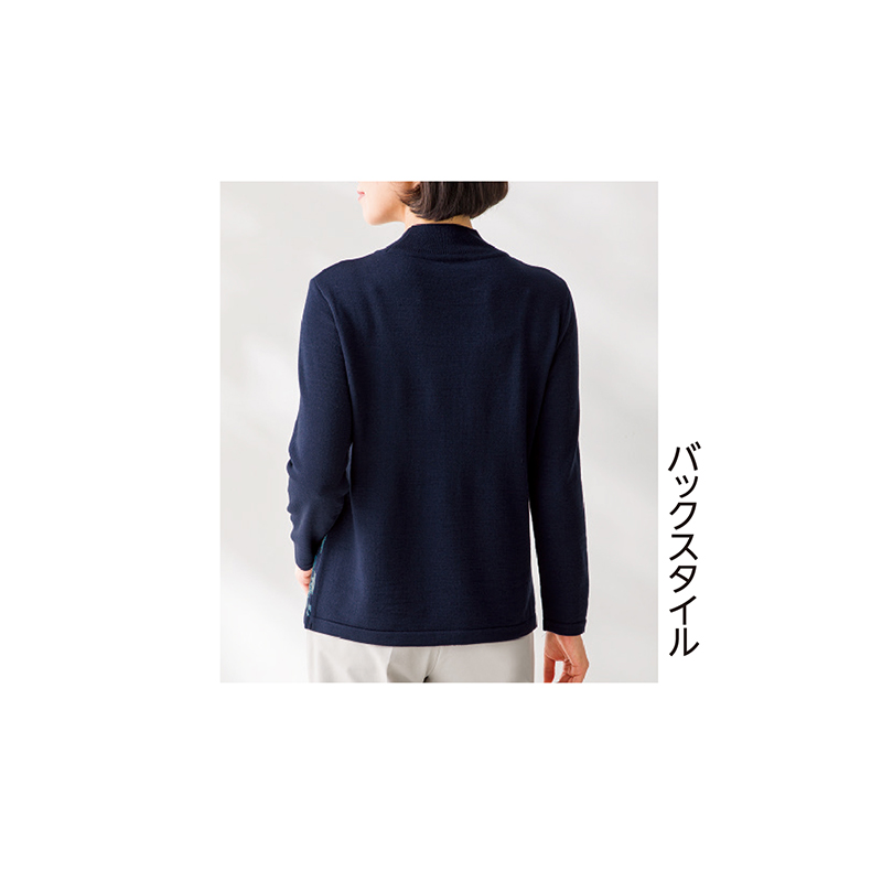 グラデーションの美しさが目を惹きます。エレガントで暖かなウール混ニット。 ジャカードの花柄は、繊細なかすり糸を使ってエレガントに。身丈を少し短めに設定して、スカート、パンツと、ボトムを選ばないのがポイント。ウール混ニットで寒さが深まる季節に活躍します。 ●カラー:ネイビー系 ●素材:柄部=アクリル66%、毛24%、ナイロン10%/無地部=アクリル60%、毛40% ●手洗い可 ●日本製 ※商品の性格上、一点一点柄の出方や仕上がり寸法等が多少異なります。