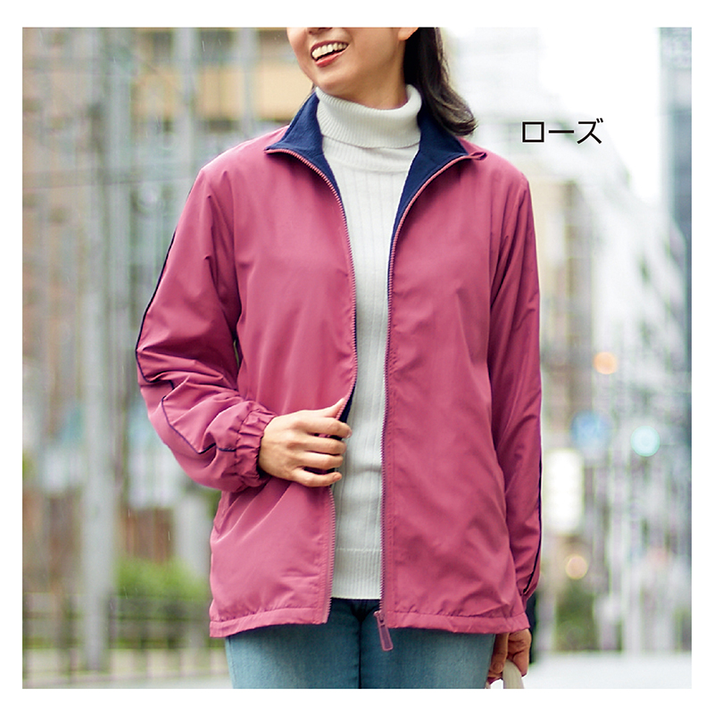 フリースの総裏仕様。カジュアル&アクティブ。 首元までカバーするウインドブレーカー風デザイン。風を通しにくい素材とフリース裏地でしっかり暖か。ちょっとした外出はもちろん、ウォーキングや野外活動時にも活躍します。 ●重量(約):340g(L) ●素材:表地=ポリエステル100%/裏地=ポリエステル100% ●仕様:両脇ポケット ●洗濯機可(ネット使用) ●中国製 ※インナーは付属しません。