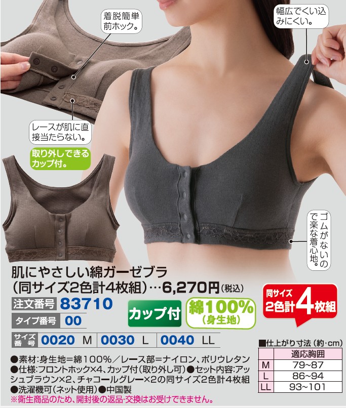 肌にやさしい綿ガーゼブラ(同サイズ2色計4枚組)