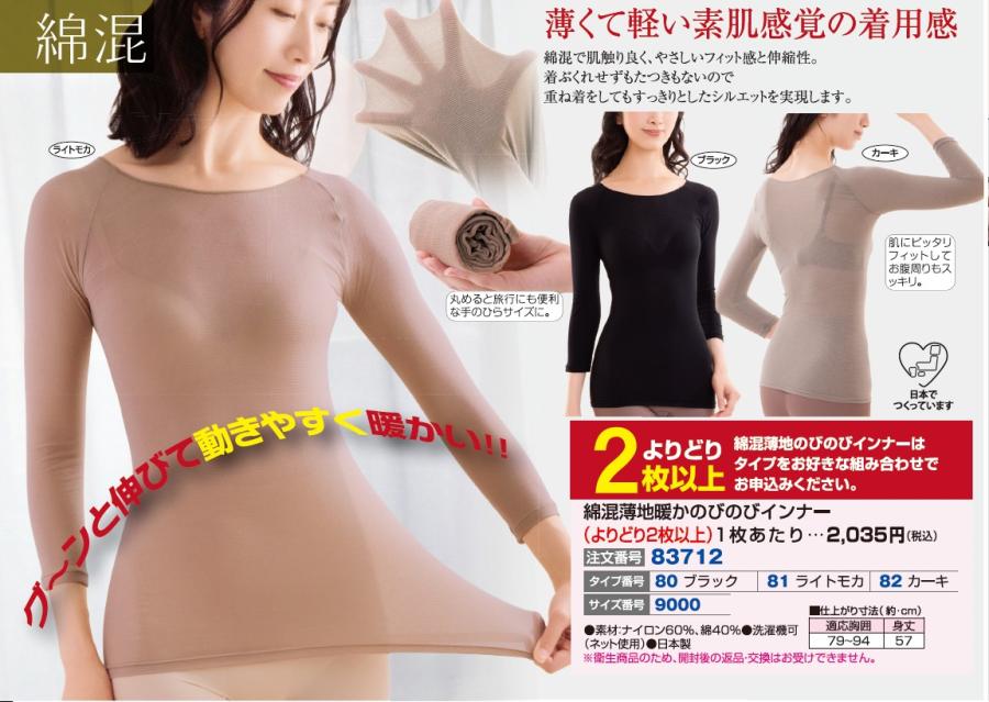 綿混薄地暖かのびのびインナー(よりどり2枚以上) 1枚あたり