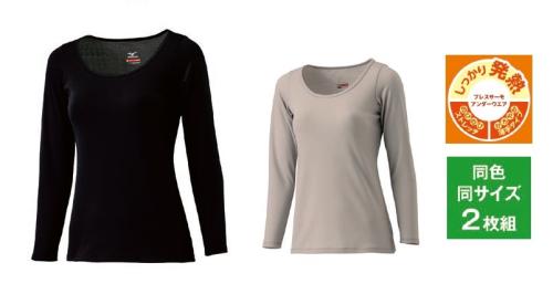 〈ミズノ〉ブレスサーモ婦人ラウンドネック長袖シャツ(同色同サイズ2枚組)