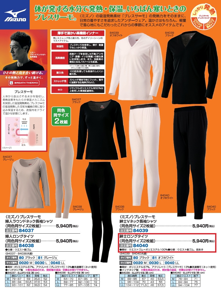 〈ミズノ〉ブレスサーモ紳士ロングタイツ(同色同サイズ2枚組)