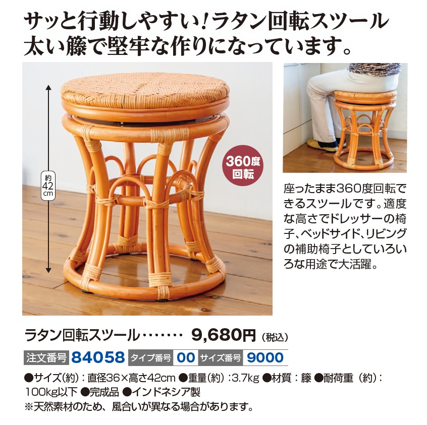 ラタン 回転スツール