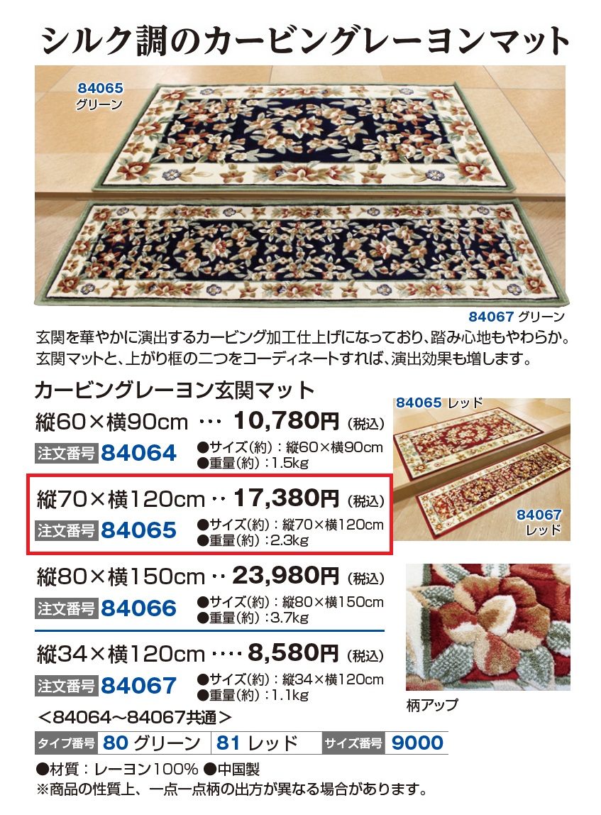 カービング レーヨン玄関マット 縦70×横120cm