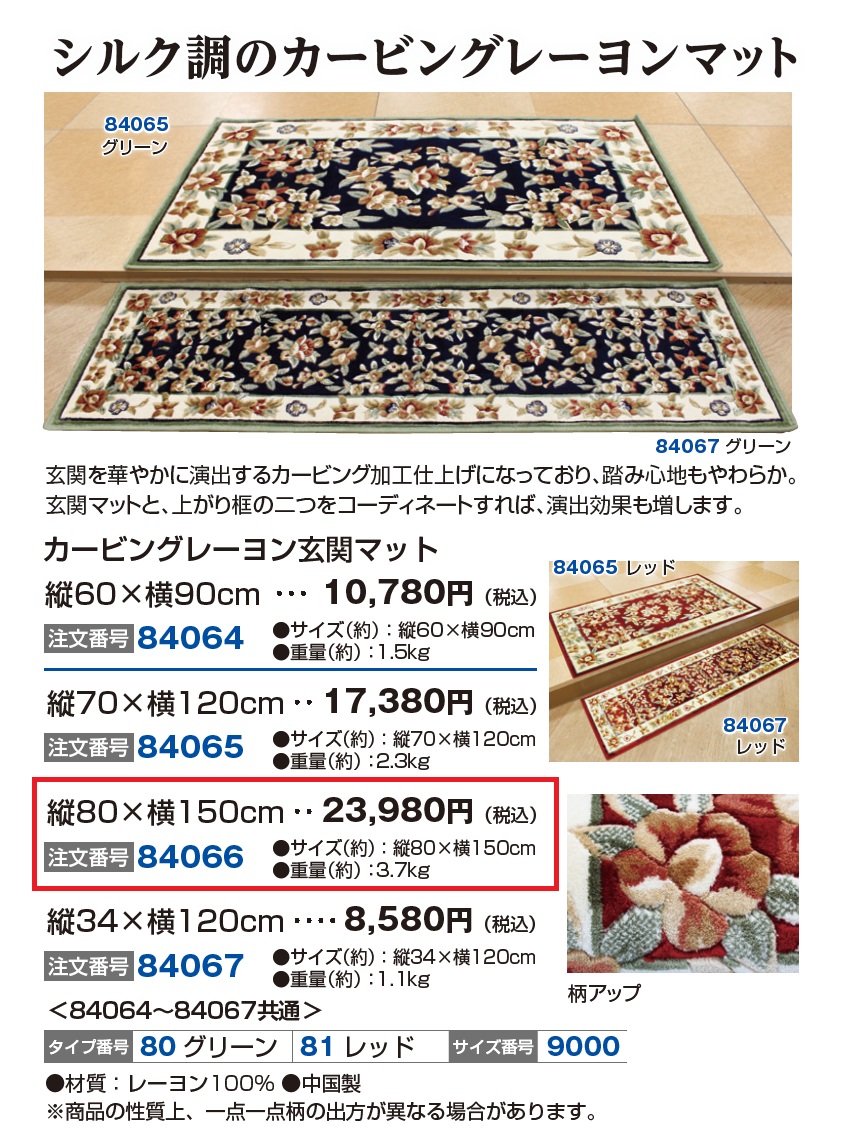 3. カービング レーヨン玄関マット 縦80×横150cm