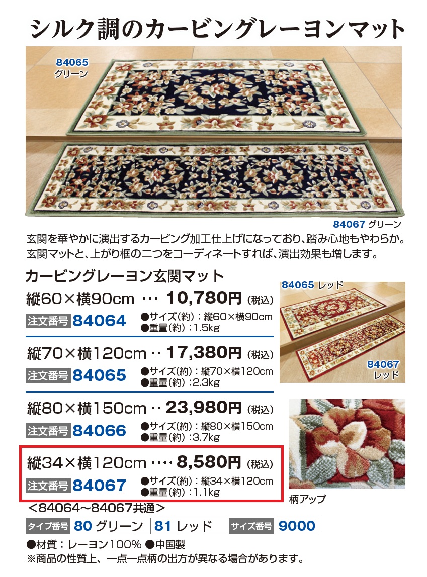 3. カービング レーヨン玄関マット 縦34×横120cm