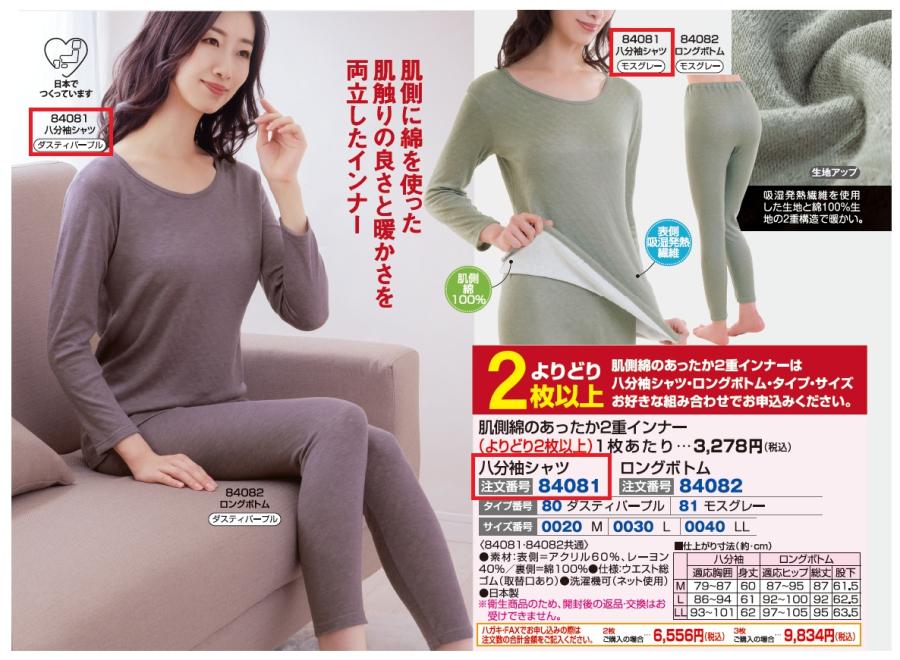 3. 肌側綿のあったか2重インナー (よりどり2枚以上) 1枚あたり 八分袖シャツ