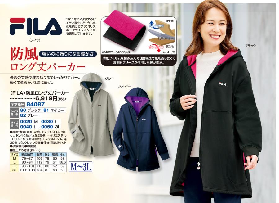 3. 〈FILA〉防風ロング丈パーカー