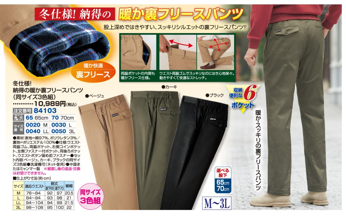 3. 冬仕様!納得の暖か裏フリースパンツ(同サイズ3色組)