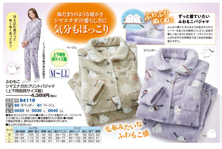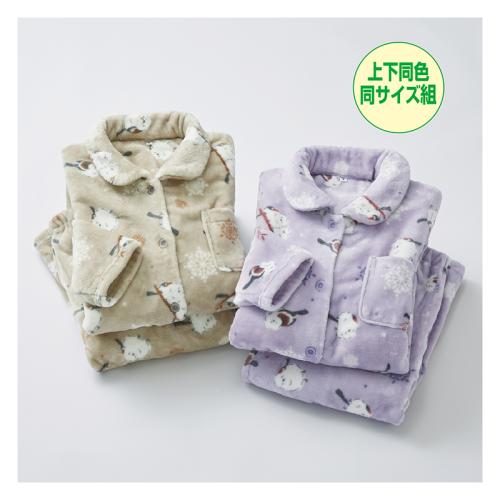ふわもこシマエナガのプリントパジャマ(上下同色同サイズ組)