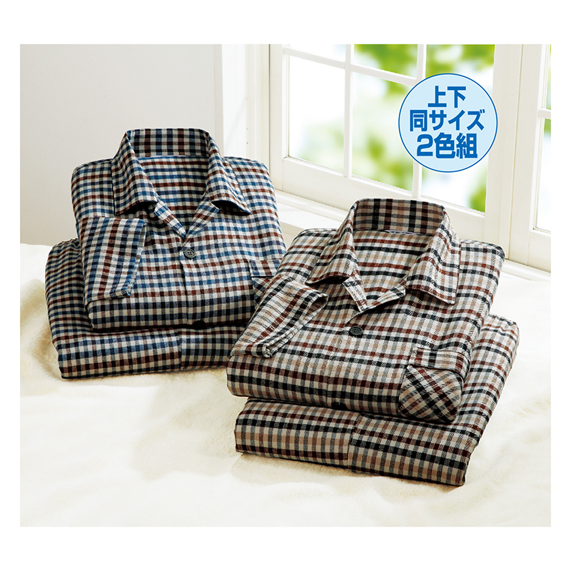 ふっくら柔らか無撚糸パジャマ(上下同サイズ2色組)