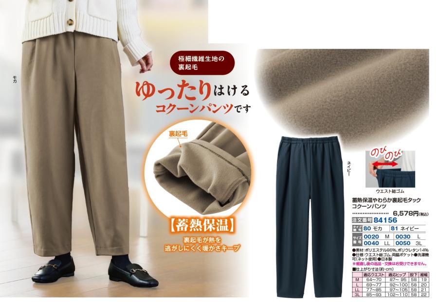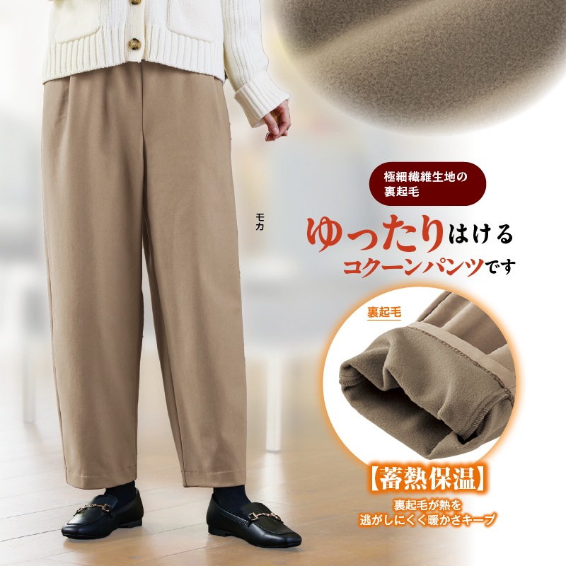 蓄熱保温やわらか裏起毛タックコクーンパンツ