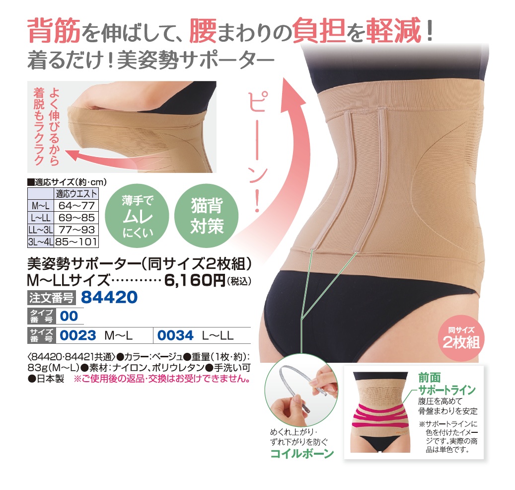 M~LLサイズ/美姿勢サポーター(同サイズ2枚組)