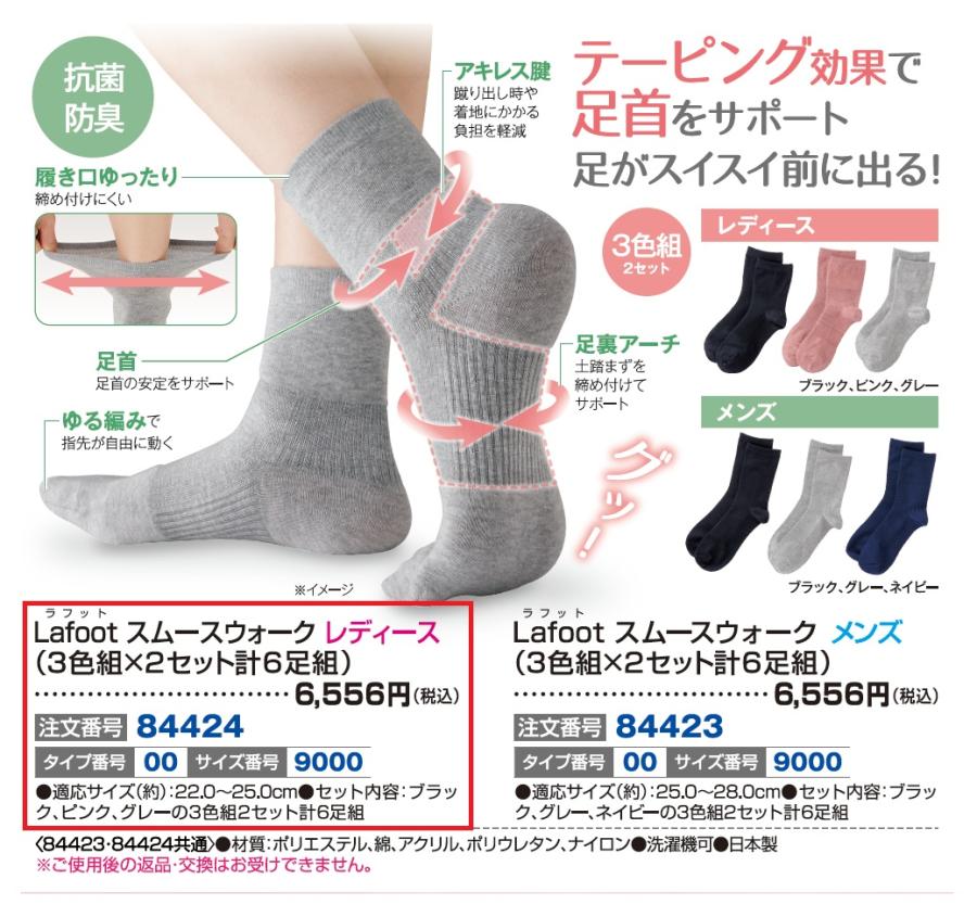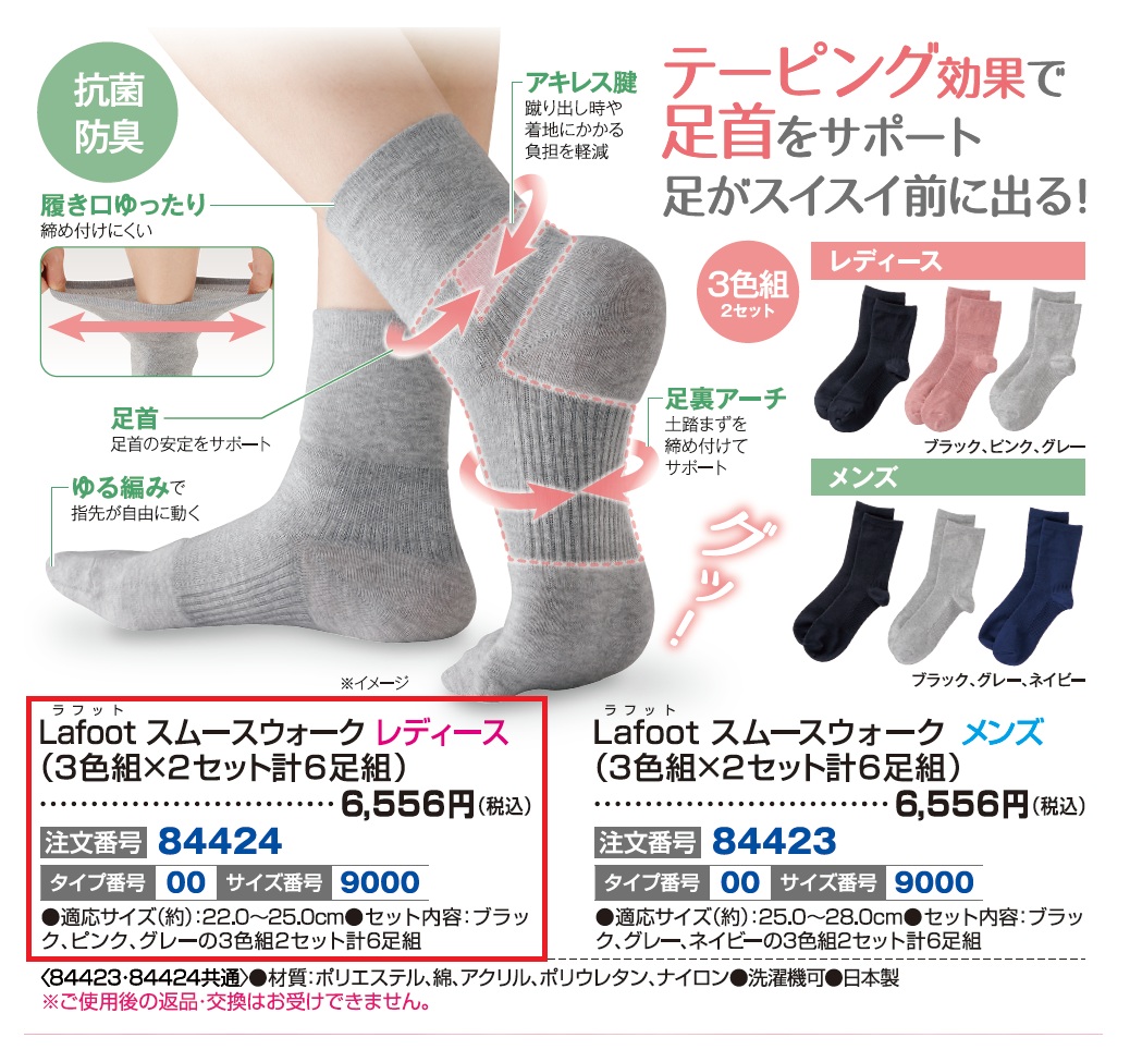 3. Lafootスムースウォーク レディース(3色組×2セット計6足組)