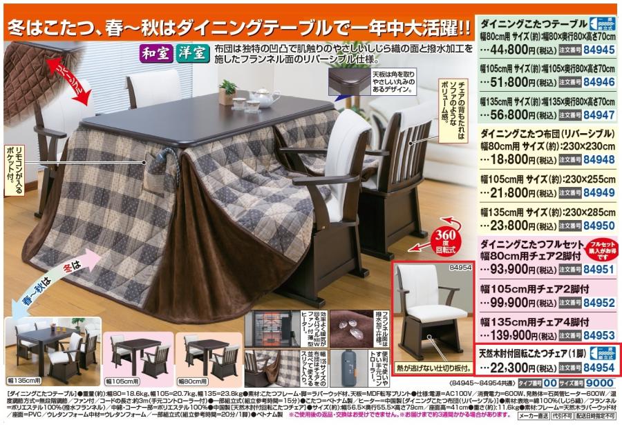 3. 天然木肘付回転こたつチェア(1脚)