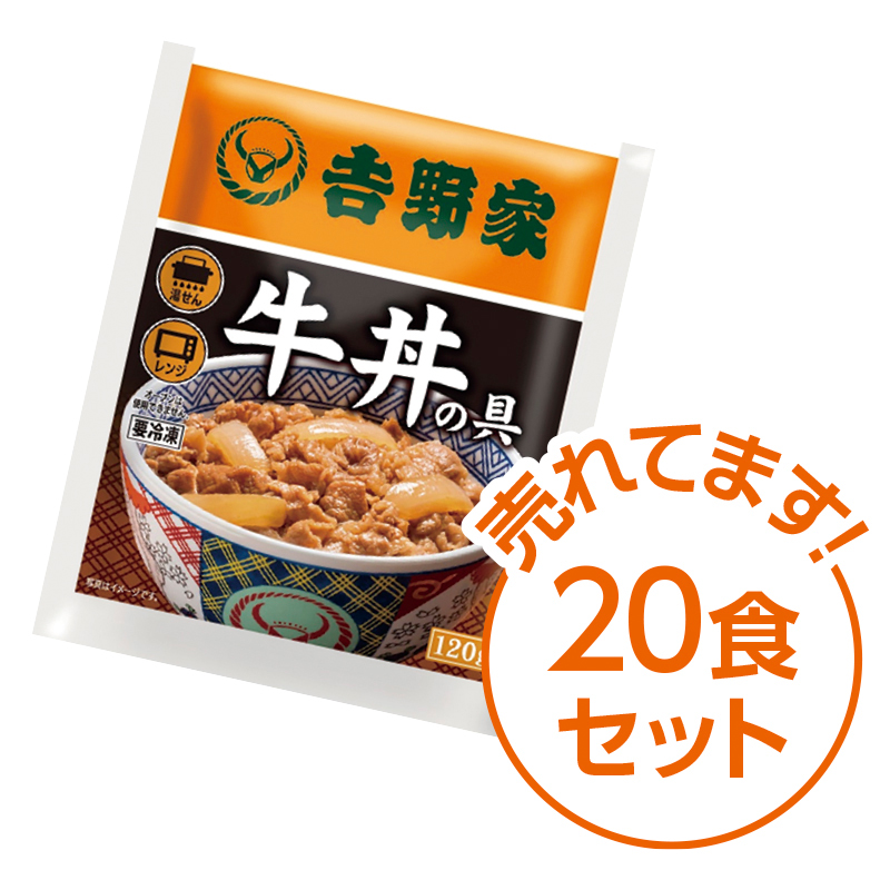 吉野家の冷凍牛丼の具は我が家の常備品。 レンジまたは湯煎で温めてご飯にのせるだけ。 ●内容量:120g×20 ●特定原材料等:小麦、牛肉、大豆、りんご、ゼラチン ●賞味期間(約):-18度以下の冷凍保存で180日 ●国内製造 ※ご飯、アレンジ例の具材は付属していません。 ※商品のお届けまで約2週間かかる場合があります。 ※クール冷凍便でお届けしますので、一部離島にはお届けできません。 ※商品の性格上、出荷後のキャンセル及び返品・交換はお受けできません。