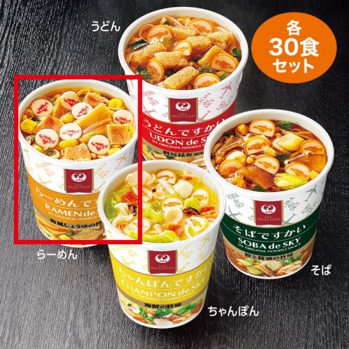手軽で便利で美味しいミニカップ麺。 機内食用に開発されたので湯もどりしやすく、約85度のお湯でもおいしく食べられます。 ●内容量:37g×30食 ●特定原材料等:小麦・乳・大豆・豚肉・鶏肉・ゼラチン ●賞味期間(約):常温保存で90日 ●国内製造 ※お届けまで約2週間かかる場合があります。 ※商品の性格上、出荷後のキャンセル及び返品・交換はお受けできません。