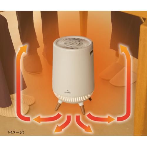 温風が360度広がって、まるで布団がないこたつみたい。 ダイニングテーブルの下に置くだけ!まるで見えない布団が出現したように暖気にすっぽり包まれます。使いやすい天面の操作部に加え、リモコン付なので座ったまま操作が可能。ソファ前などのスポットヒーターとしても使えます。 ●カラー:アイボリー ●サイズ(約):直径22.6×高さ36.7cm/電源コード長さ=1.8m ●重量(約):2.8kg ●材質:ABS樹脂、ポリカーボネート、PET樹脂+ガラス ●電源:AC100V ●消費電力:最大1200W(強) ●仕様:モード=強・中・弱・送風/オン・オフタイマー=1・2・4・6時間/安全装置=サーモスタット、転倒時自動電源オフ機能、チャイルドロック機能/LEDライト付(底面) ●一部組立式(脚部) ●付属品:リモコン ●中国製 ※ご使用後の返品・交換はお受けできません。