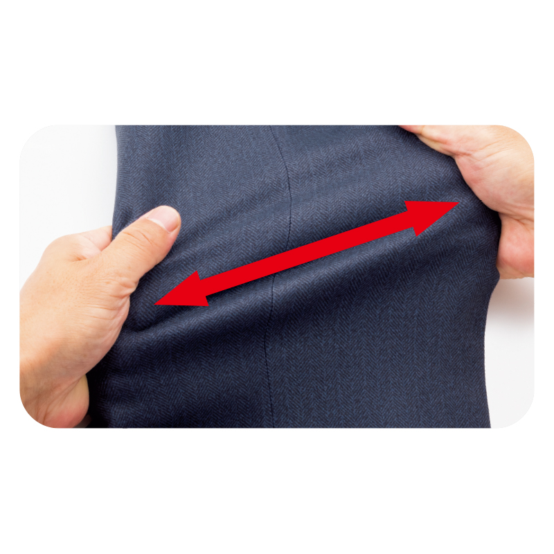 123もの工程を経て仕上げられたこだわりのスラックス。しかも、生地の中にダウンを入れて保温性を高め、軽量でストレッチ性も備えた上質なはき心地。ヘリンボーン柄が高級感を演出します。