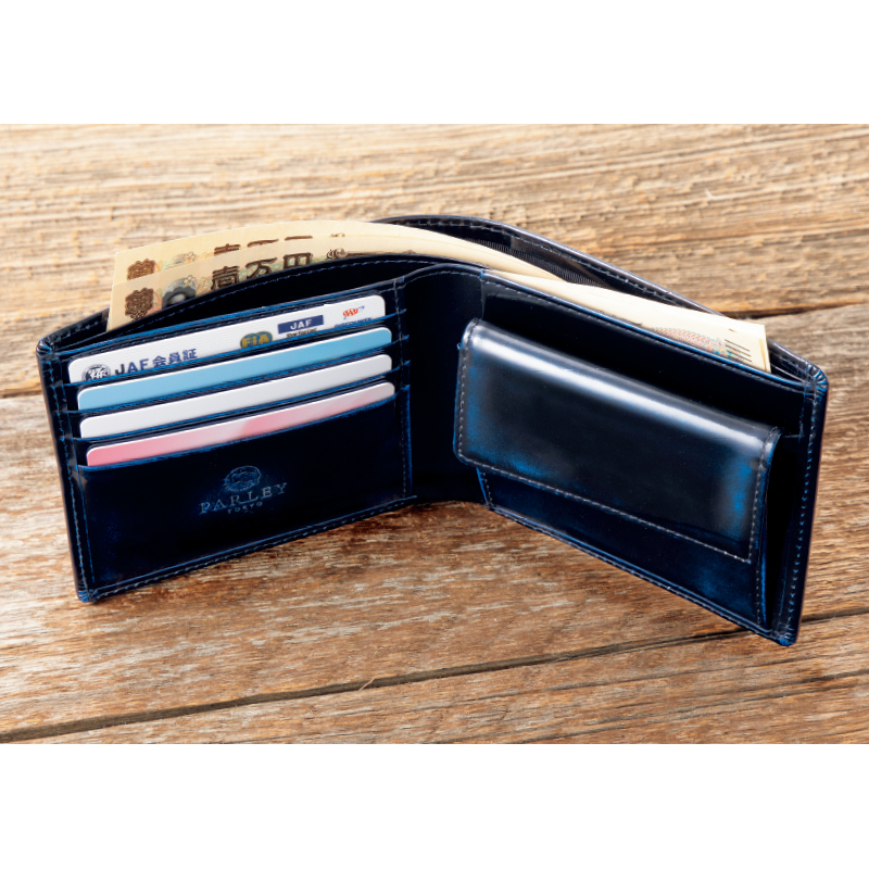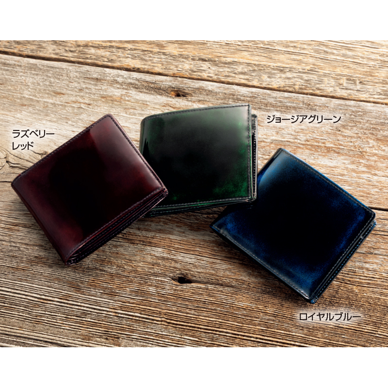 深みのある革に職人技が見えるスタンダードな二つ折り財布。 上質の牛革(キップ)を使い、製品にしてから職人が丹念に磨きをかけて、深い艶とアンティークのようなニュアンスのある表情を生み出しました。小物にも上質を求める紳士に。 ●サイズ(外寸・約):幅11.2×高さ9.5×厚さ1.8cm ●重量(約):75g ●材質:表地・裏地=牛革(キップ) ●仕様:札入れ×2、カード入れ×4、オープンポケット×3、小銭入れ×1 ●日本製 ※商品の性格上、一点一点風合い等が異なります。