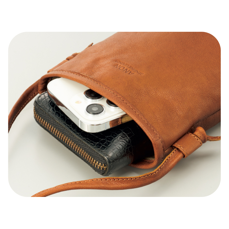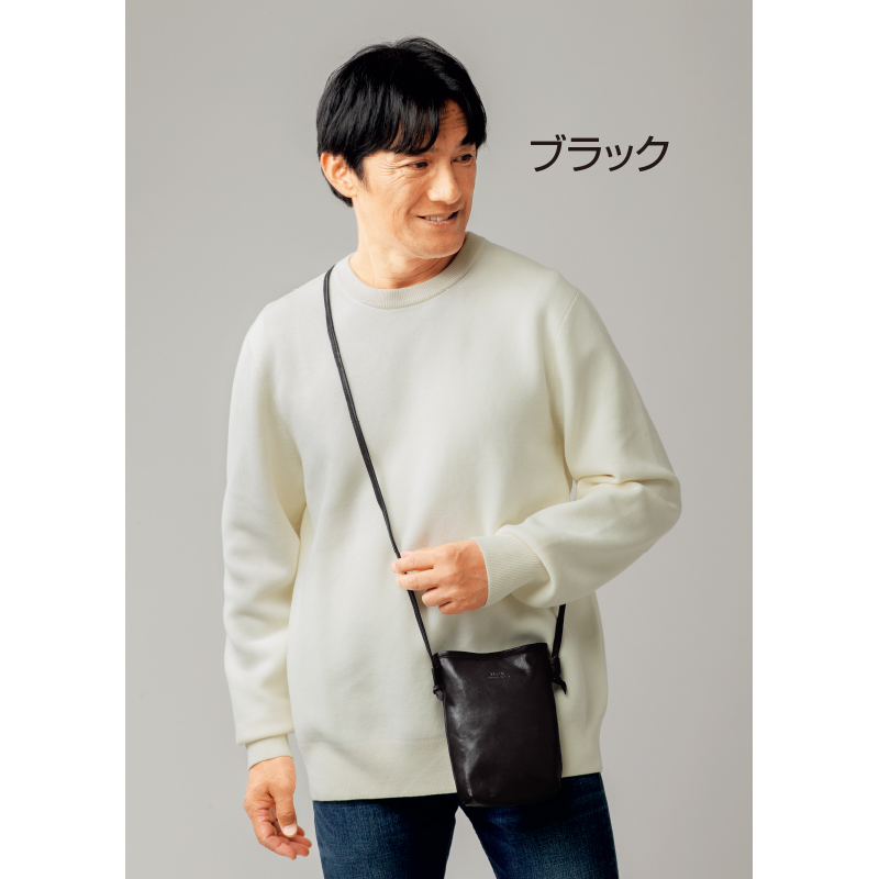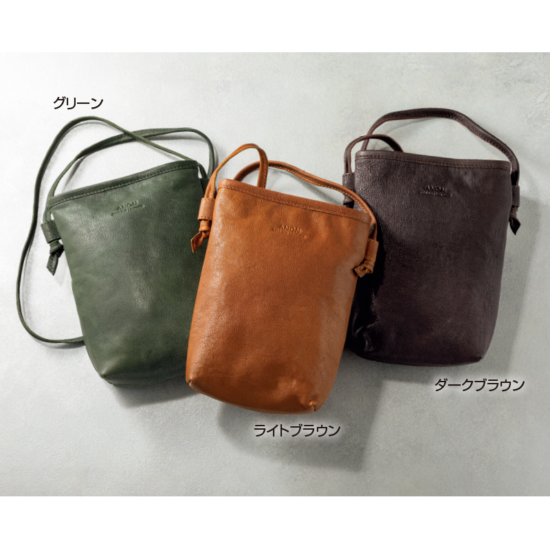小物の持ち歩きに便利。本革ミニショルダーバッグ。 表情が豊かでキズが付きにくく、丈夫な山羊革で作られた贅沢な縦型ミニショルダー。必要最低限の小物が収納でき、見やすい位置にカード入れも付いています。軽量で持ち運びもしやすいので旅や散歩にも便利です。 ●サイズ(外寸・約):幅14.5×高さ19×厚さ5cm/ショルダーベルト長さ=最大133cm(着脱可・両サイドのベルト結びで調整可) ●重量(約):100g ●材質:表地=山羊革、綿、他/ショルダーベルト=山羊革 ●仕様:ホック付オープンメインコンパートメント(内部にカード入れ×1) ●インド製