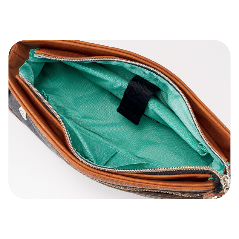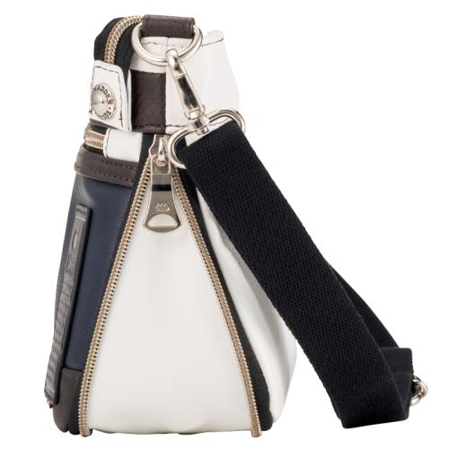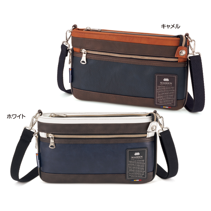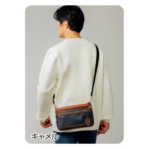 小さく持てて、いざという時はマチが広がるミニショルダー。 レザー調の本体に刻印を施したワッペンがポイント。マチを拡縮できるので、荷物の量によって使い分けられます。ショルダーを外せばクラッチとしても使うこともでき、活用範囲の広いバッグです。 ●サイズ(外寸・約):幅27×高さ16.5×厚さ3.5(開いた時9)cm/ショルダーベルト長さ=71~136cm(着脱可) ●重量(約):410g ●材質:本体=PUレザー/ショルダーベルト=ポリエステルスパン ●仕様:ファスナーメインコンパートメント(内部にオープンポケット×3)/前面=ファスナーポケット×1/エキスパンダブル仕様 ●ベトナム製