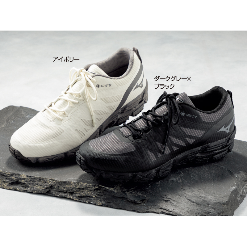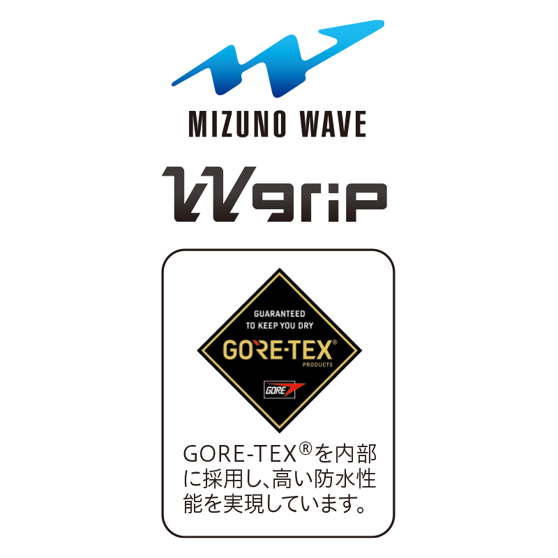 悪天候や悪路も平気な快適シューズ。 クッション性・安定性を両立する「ミズノウエーブ」を搭載。さらに防水透湿性を兼ね備えたゴアテックス使用で悪天候でも快適に歩けます。 ●ワイズ:3E相当 ●重量(約):360g(26.5cm・片足) ●材質:アッパー=合成繊維/ソール=合成底 ●ベトナム製