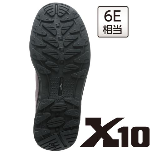 踵部分には耐摩耗性に優れたアウトソール素材「X10」を採用。