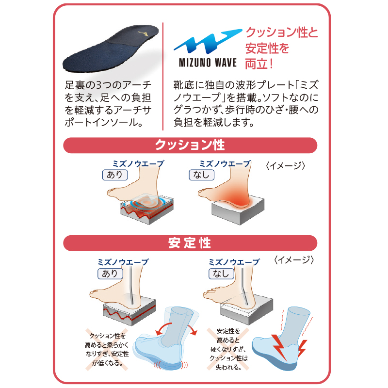 幅広・甲高の足が喜ぶ6E相当 快適にウォーキング! ウォーキングはもちろん、普段使いもしやすいメッシュタイプ。特殊なソール設計で、足運びがよりスムーズに! ●ワイズ:6E相当 ●重量(約):335g(26.0cm・片足) ●材質:アッパー=人工皮革、合成繊維/ソール=合成底 ●ベトナム製