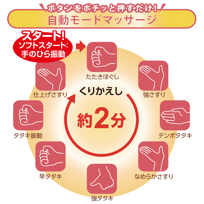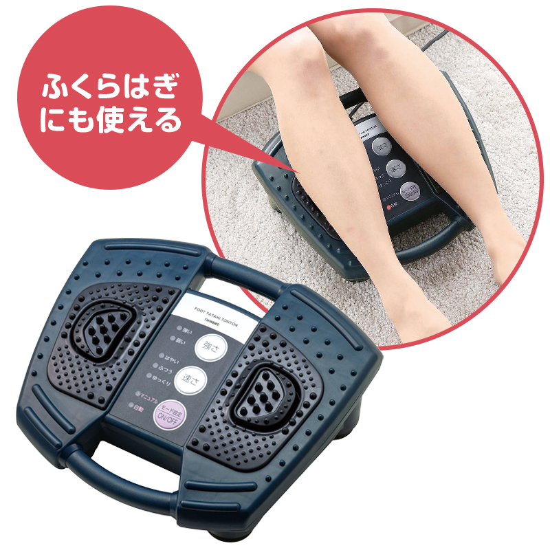 仕事や家事、スポーツでお疲れの足をたたいてほぐす。 多くのツボが集まり「体の縮図」と言われる足裏や「第二の心臓」と言われるふくらはぎを、左右交互にマッサージ。8つのタタキパターンから選べ、まるで人から叩いてもらっているような感覚です。 ●カラー:ネイビー ●サイズ(約):幅35×奥行29.5×高さ16cm/電源コード長さ=2.5m ●重量(約):2.4kg ●材質:ポリプロピレン、PVC、シリコーンゴム、他 ●電源:AC100V ●消費電力:最大19W ●連続使用時間(約):15分 ●仕様:強度=2段階調節/速度=3段階調節/自動電源オフ機能=約15分 ●管理医療機器認証番号:220AGBZX00101A01 ●中国製 ※ご使用後の返品・交換はお受けできません。