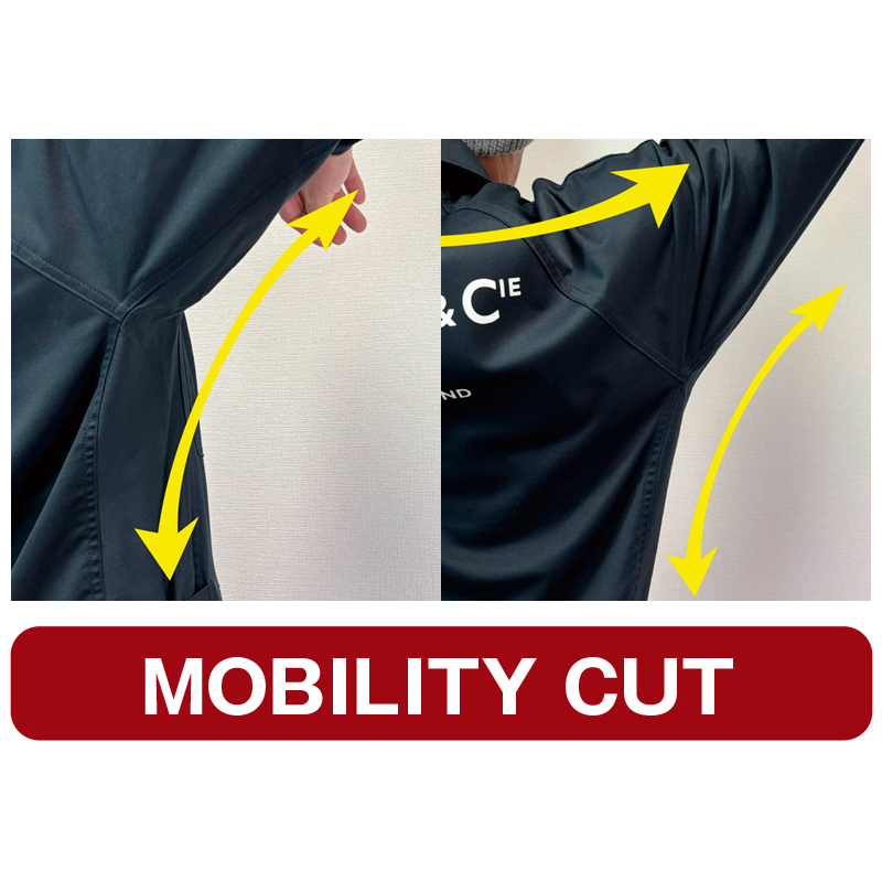 脇裾から袖口まで縫い目が無い一枚生地なので、腕がラクに大きく動かせます。