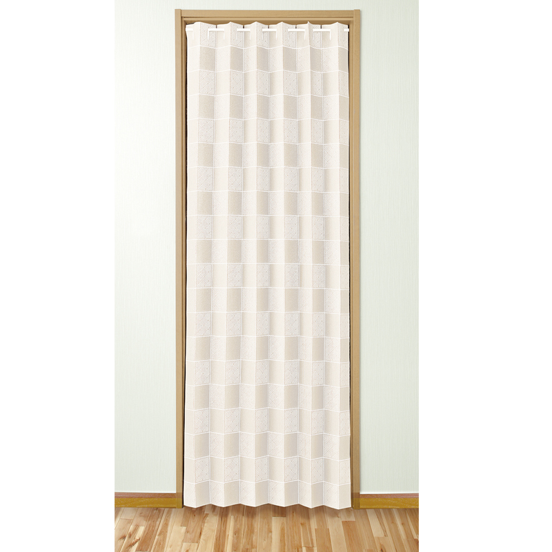 パタパタたためてスッキリ間仕切り。暖房効果もアップで省エネ。 パタパタと折りたためる厚手レースの間仕切りカーテンです。扉のない場所に取り付ければ暖房効果もアップ。たたんだ際にスペースを取らないので、出入りの邪魔になりません。取り付けは市販の伸縮ポールに通すだけの手軽さです。 ●サイズ(約):幅95×高さ265cm ●重量(約):560g ●材質:ポリエステル100% ●洗濯機可(ネット使用) ●日本製 ※伸縮ポールは付属しません。 ※カットラインの厚みが一点一点異なる場合があります。 ※ハサミでカット後の返品・交換はお受けできません。