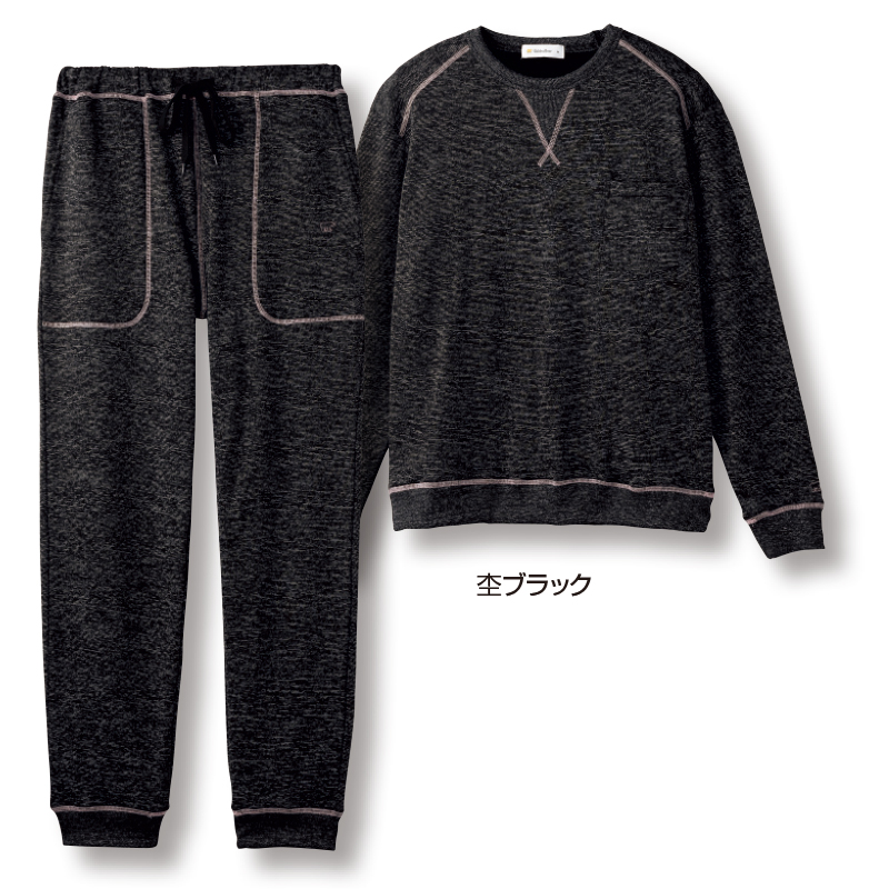 一度着たら脱ぎたくない。あったかスウェット。 肌触りが気持ちいいスウェット素材に裏起毛をプラス。動きやすく、暖かさに包まれる上下セットです。杢調の生地がさりげなくおしゃれ。部屋でのくつろぎから、ちょっとした外出までデイリーに活躍します。 ●素材:ポリエステル95%、ポリウレタン5% ●仕様:トップス=左胸ポケット×1/パンツ=両脇ポケット、ウエスト総ゴム(調整ひも付)、前とじ ●洗濯機可 ●カンボジア製