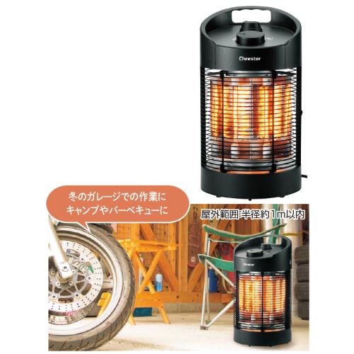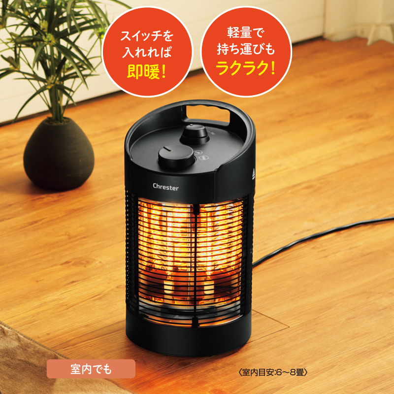 素早く暖める電気ヒーターの扱いやすいコンパクトモデル。 小型軽量の電気ヒーター。360度首振り機能を備え、ヤケドしにくい防護網、転倒時自動オフ機能など安全・安心にも配慮されています。また、屋外の使用もOK!IPX5防水仕様で、水がかかっても大丈夫。ベランダでも庭でも、家庭用100Vのコンセントがあればどこでも設置できます。 ●カラー:ブラック ●サイズ(約):幅22×奥行22×高さ41cm/電源コード長さ=1.8m ●重量(約):2.4kg ●材質:ABS樹脂、他 ●電源:AC100V ●消費電力:最大600W ●仕様:防水(IPX5等級)/強度=2段階切替(300W/600W)/首振り機能=120度・360度/安全装置=転倒時自動電源オフ機能、自動復旧機能 ●中国製 ※ご使用後の返品・交換はお受けできません。