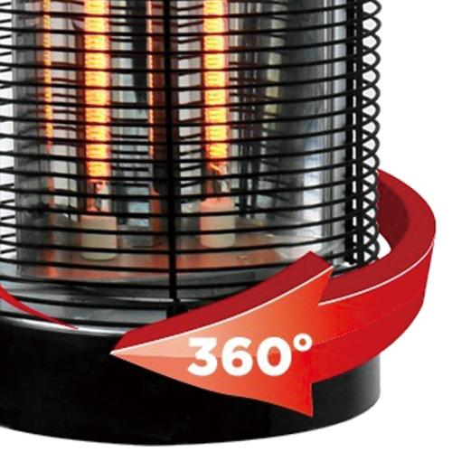 ヒーター部が360度首を振り、周りをくまなく暖めます。(120度、360度切替式)