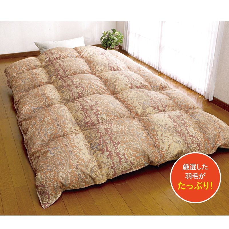 暖かさとふんわり感が違うエクセルゴールド羽毛。 厳選したホワイトダックの羽毛をたっぷり使用。業界基準を超える清浄度に仕上げ、さらにダニを通さない高密度の生地で包みました。移動防止キルトで羽毛の片寄りもガード。 ●カラー:ローズ ●サイズ(約):幅190×長さ210cm ●重量(約):2.5kg(詰め物=1.6kg) ●材質:側地=ポリエステル85%、綿15%/詰め物=ホワイトダックダウン90%、フェザー10% ●仕様:固定ひも×8 ●ドライクリーニング可 ●日本製 ※商品の性格上、一点一点柄の出方が異なる場合があります。
