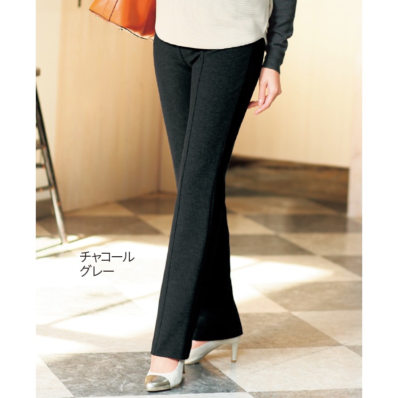 肌の湿気を熱に変えるレーヨンを使用。ソフトな風合いと優雅な光沢感が魅力のストレッチパンツです。