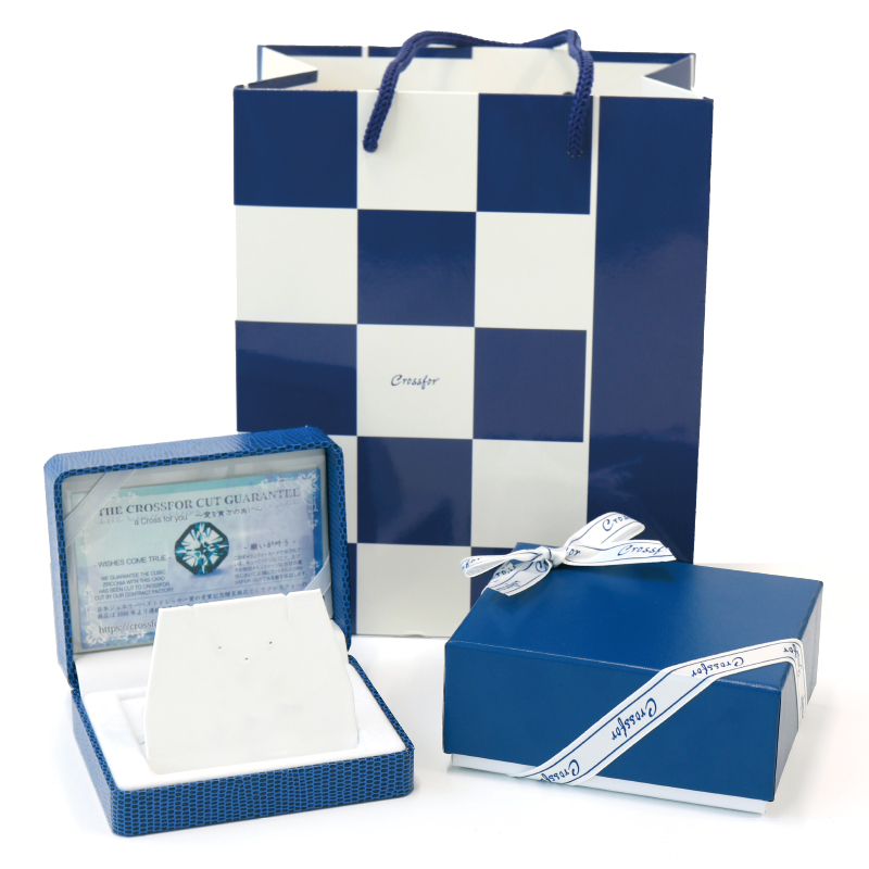 光の反射を利用して宝石の中央に十字の輝きを持たせた、オリジナルのクロスフォーカット。