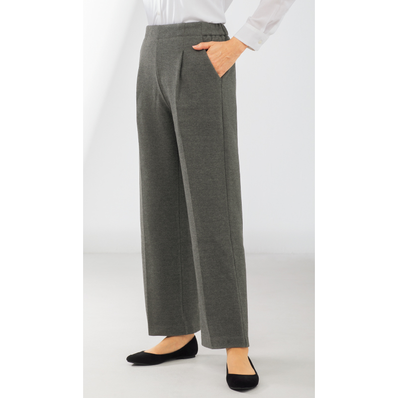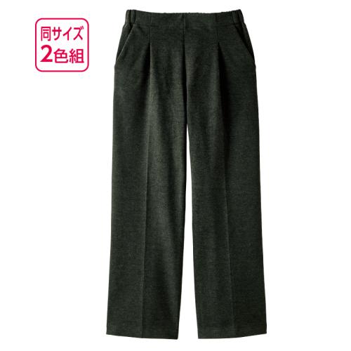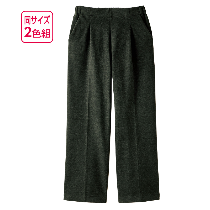 旬のワイドパンツを暖か素材で楽ちんに。 肌あたりがソフトであったか。ゆったりワイドパンツをセンタープレスできちんと見えする印象に。ウエストは後ろゴム仕様とタック入りで長時間はいてもラクです。 ●素材:ポリエステル74%、レーヨン22%、ポリウレタン4% ●仕様:ウエスト後ろゴム、両脇ポケット ●セット内容:ブラック、杢グレーの同サイズ2色組 ●洗濯機可 ●中国製 ※裾直し後の返品・交換はお受けできません。