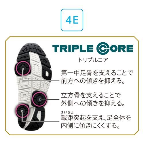 長時間立ちっぱなしでも疲れにくい! ダブルフロートインソール+メロウフォーム+トリプルコア搭載の「stand-ez」構造で、足骨のバランスをサポート。安定感のある快適な歩行を実現します。 ●ヒール高さ(約):5.3cm ●ワイズ:4E ●重量(約):228g(23.5cm・片足) ●材質:アッパー=合成皮革、合成繊維/ソール=EVA、ラバー ●中国製