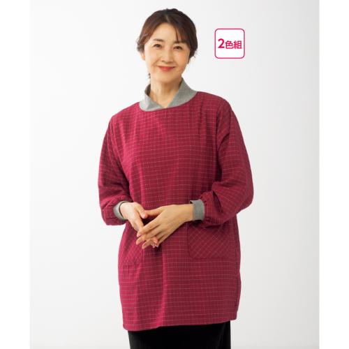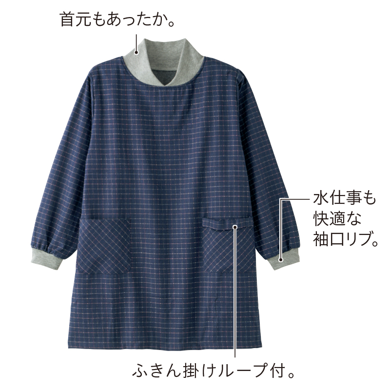 裏フリース割烹着で冬の家事にぬくもりを。 軽くて動きやすい綿100%の生地にフリース裏地をプラスした、あったか割烹着。腰までカバーするチュニック丈で、ゴミ出しや外で洗濯物を干す時も快適です。●素材:表地=綿100%/裏地=ポリエステル100%(フリース)/リブ部分=ポリエステル72%、綿26%、ポリウレタン2% ●仕様:両前ポケット×2(片方はふきん掛けループ付き) ●セット内容:ネイビー、ボルドーの2色組 ●洗濯機可(ネット使用) ●中国製 ※商品の性格上、一点一点色・柄の出方が多少異なります。
