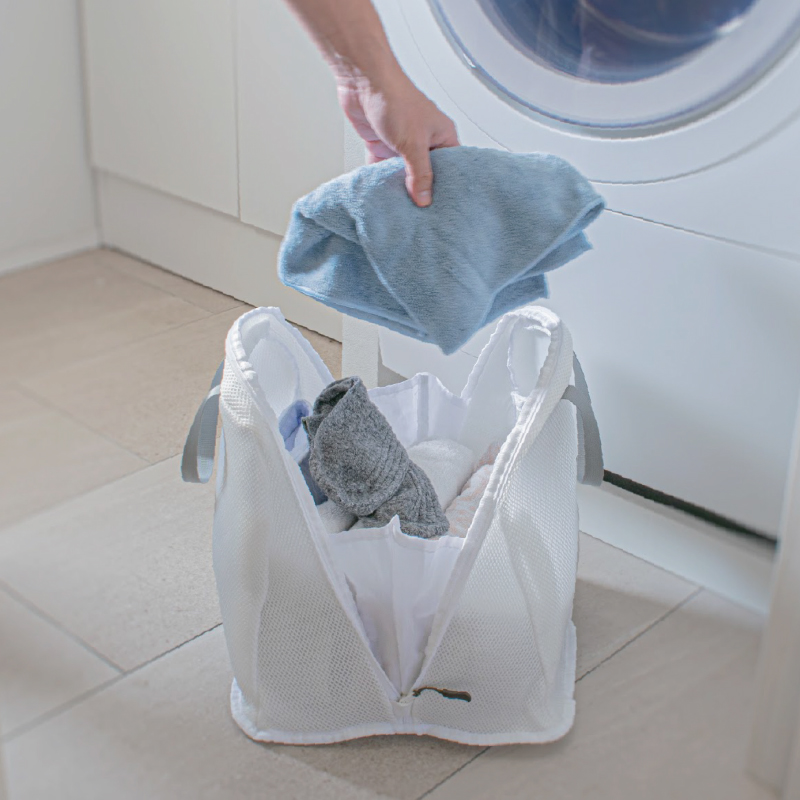 洗濯物をそのまま入れて丸洗いできる脱衣かご。 脱衣かごがそのまま洗濯ネットになるので、洗濯機への入れ替え作業や小物の取り忘れもなくなります。乾燥機も使用OK。ご家族ごとにバッグを分ければ、仕分けの手間もカット。洗濯の時間短縮にもなります。●サイズ(外寸・約):幅30×高さ28×厚さ30cm/持ち手高さ=11cm ●重量(1個・約):220g ●材質:ポリエステル ●仕様:ファスナー開閉 ●中国製 ※ご使用後の返品・交換はお受けできません。