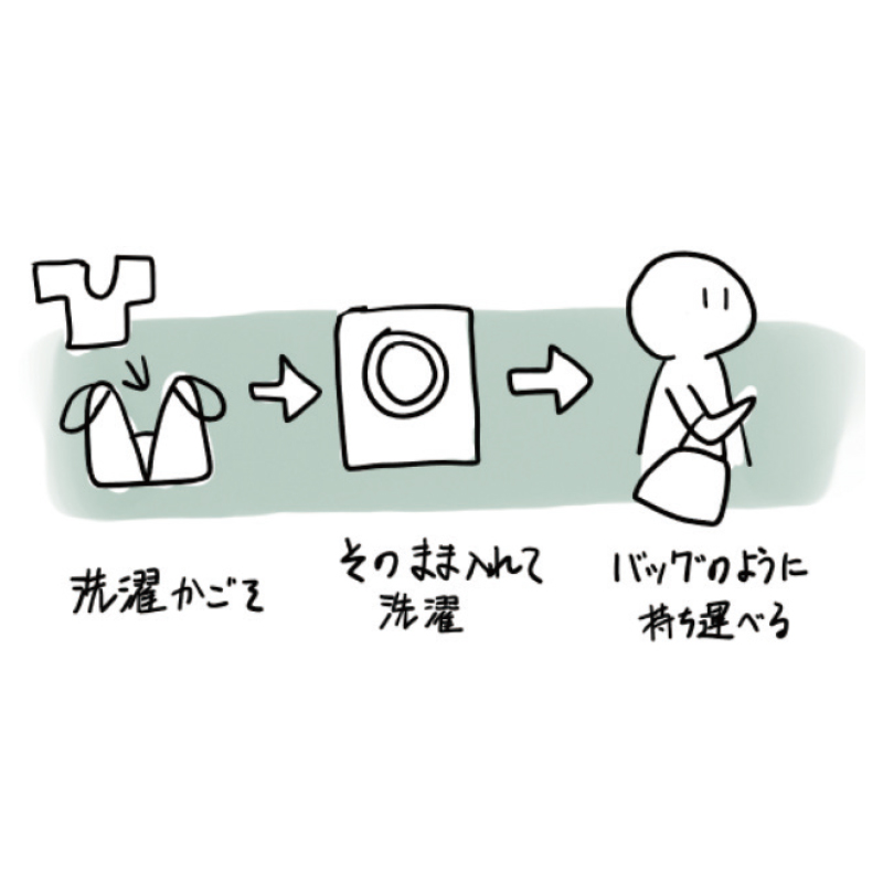 自立して広く開口するので洗濯かごとして使えます。